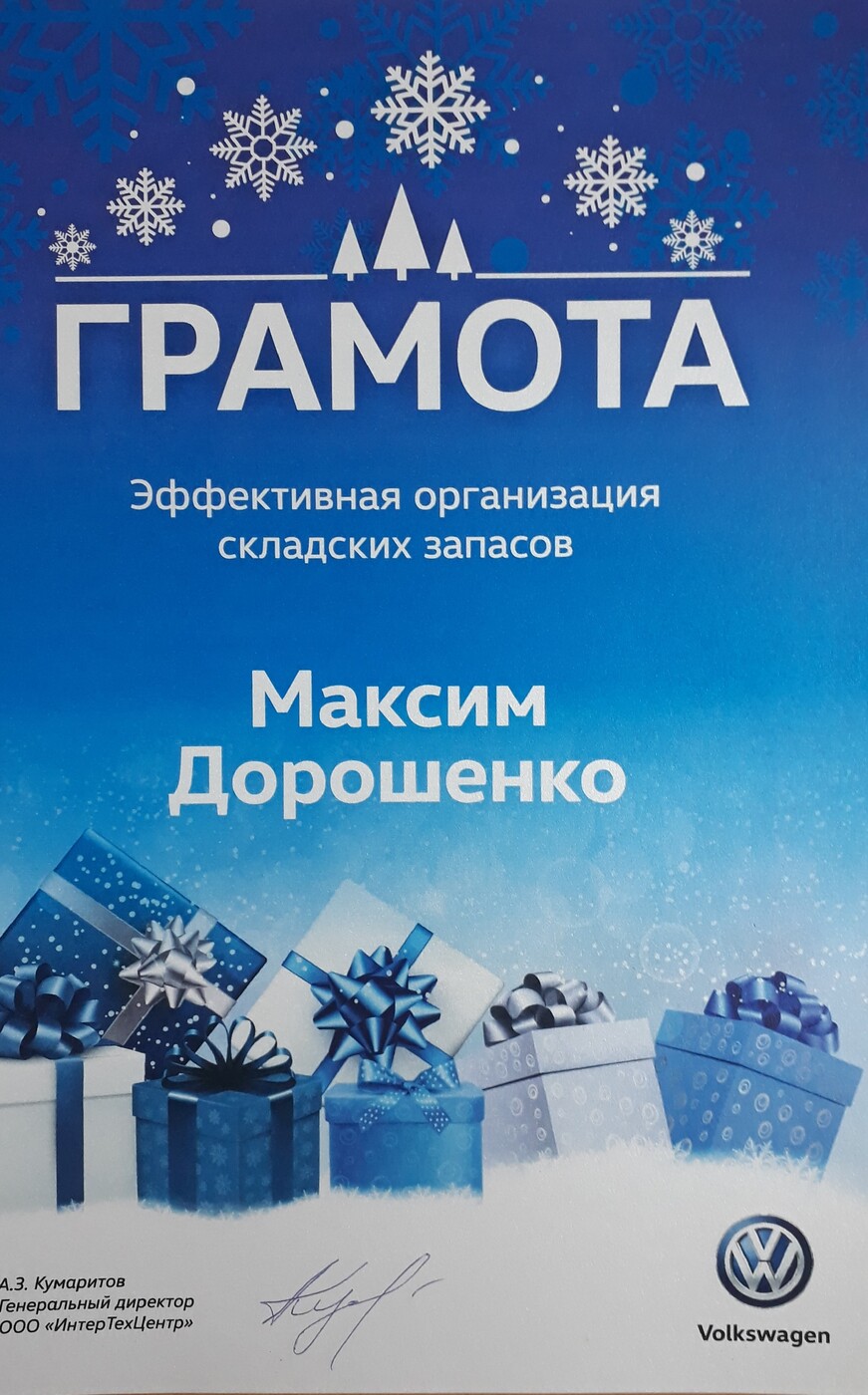 Я планирую переезд в г.Белгород в мае 2019г. и в связи с этим ищу работу. Имеются грамоты от работодателя за достижение хороших показателей. Работал в такой большой компании как Автомир (www.avtomir.ru) по марке Renault и компании ИнтерТехЦентр (www.intertc.ru) по марке Volkswagen. Имеется опыт работы на должностях: кладовщик, заведующий складом, менеджер по запасным частям и аксессуарам, логист склада(специалист по закупкам и планированию склада), руководитель ОЗЧ